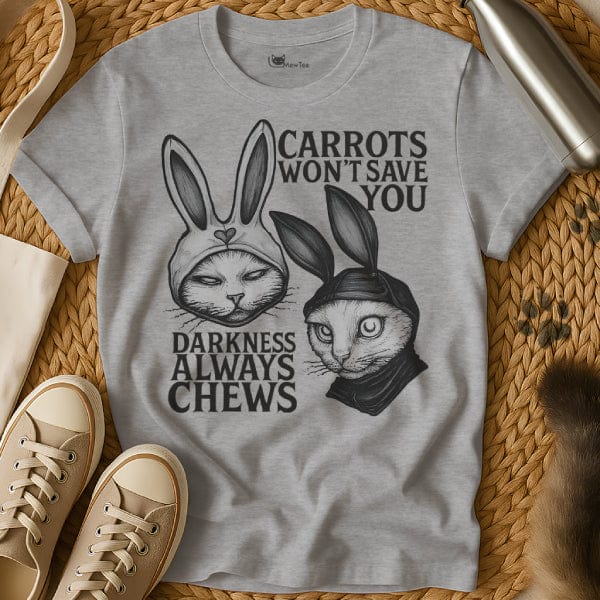 Hop into dark humor with the Rabbit Shirt 🐾🐇! Featuring two cats dressed in eerie bunny hoods with the creepy phrases “Carrots won’t save you” and “Darkness always chews,” this gothic tee is perfect for sarcasm fans, cat lovers, and edgy style enthusiasts. A chilling yet funny design that guarantees second looks 😼.